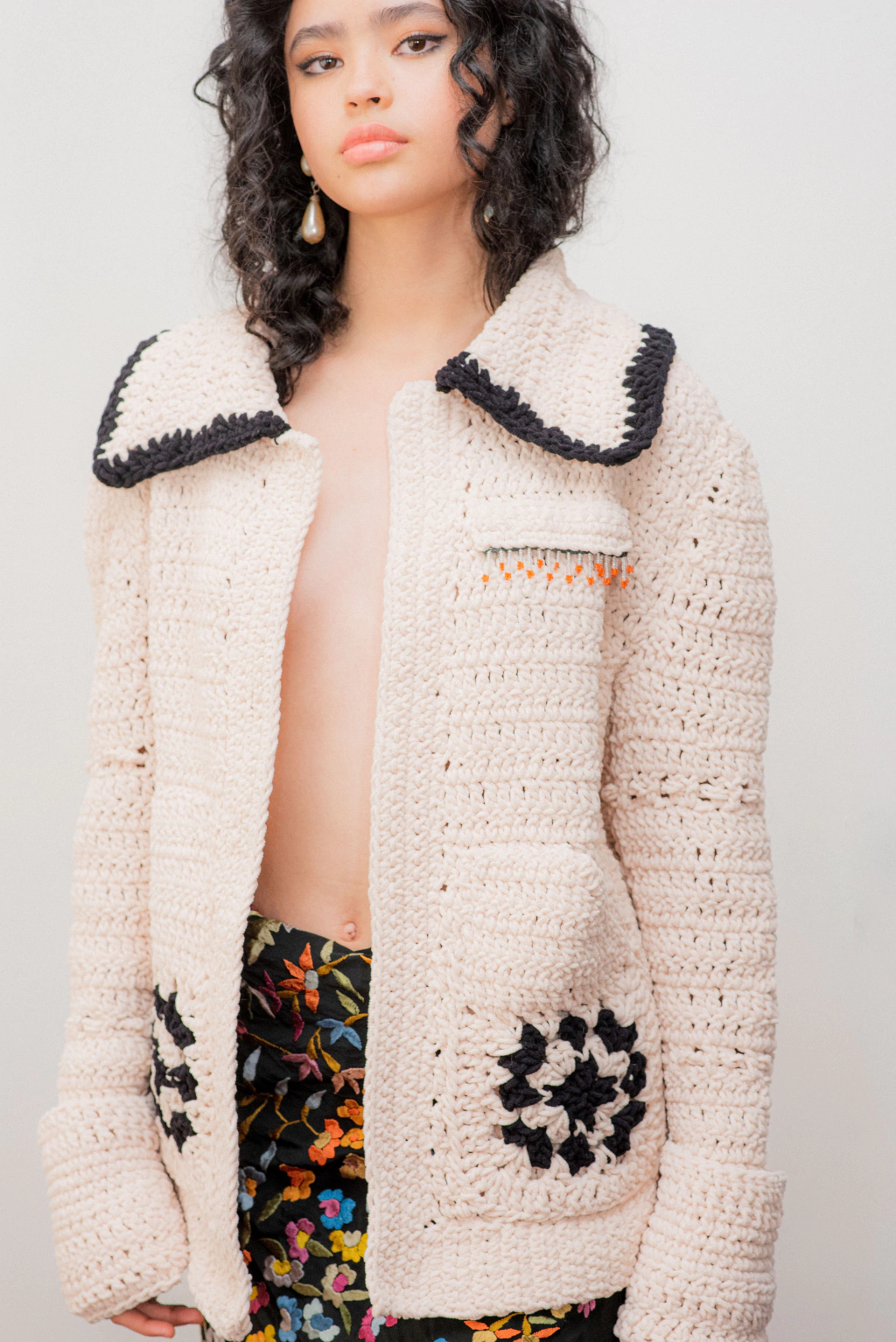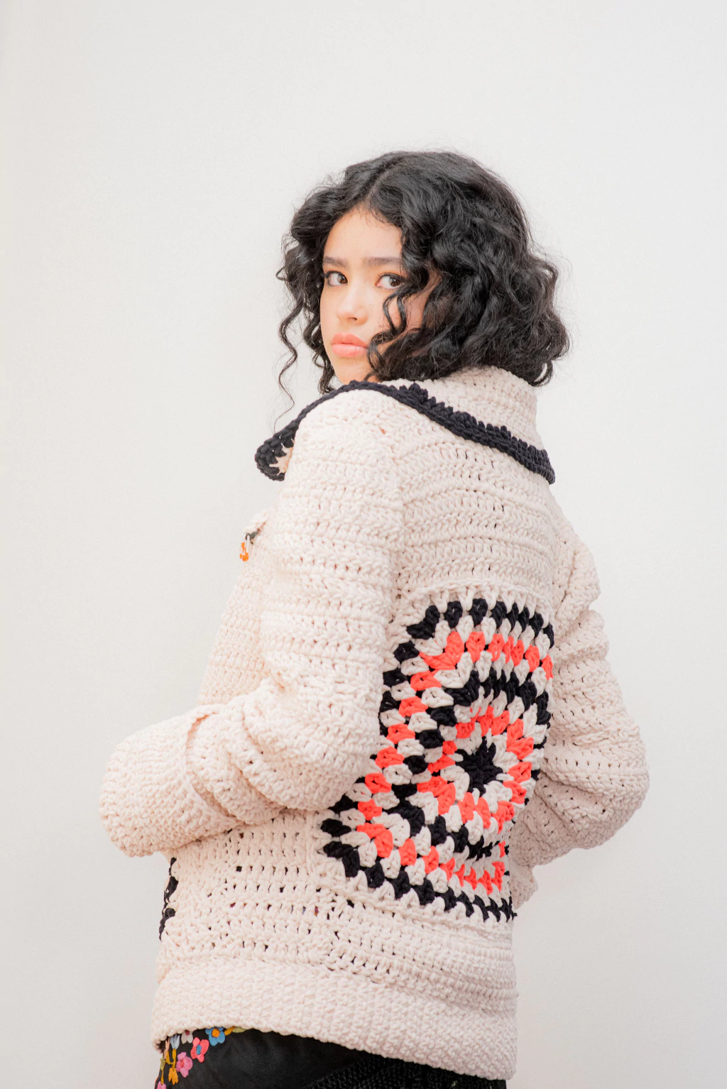 Es una prenda con variedad de puntos y detalles inspirados en una prenda tejida por nuestra Nona.
